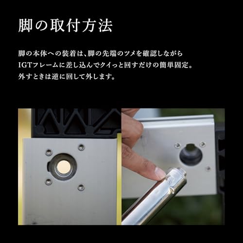 反対側には脚を取り付ける穴と金具があるので、脚をブスっと差してクルっ回すだけですセッティングは完了です。